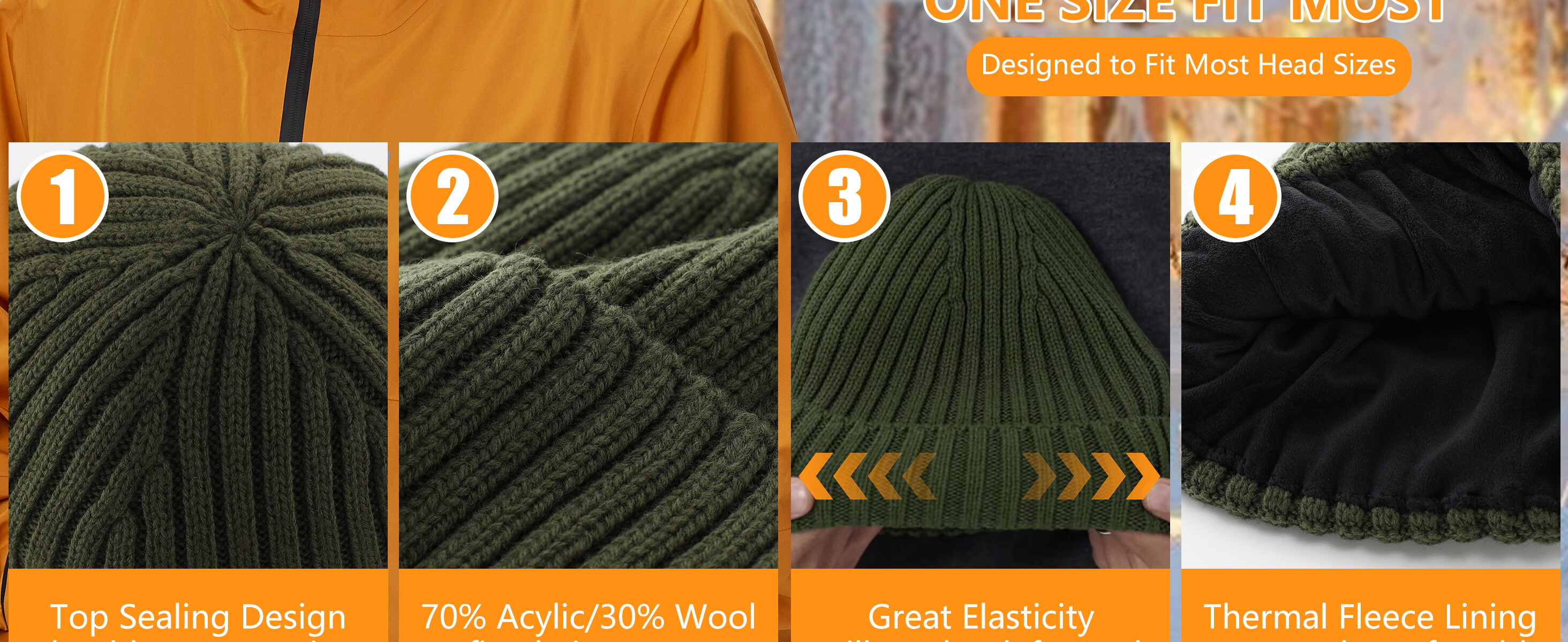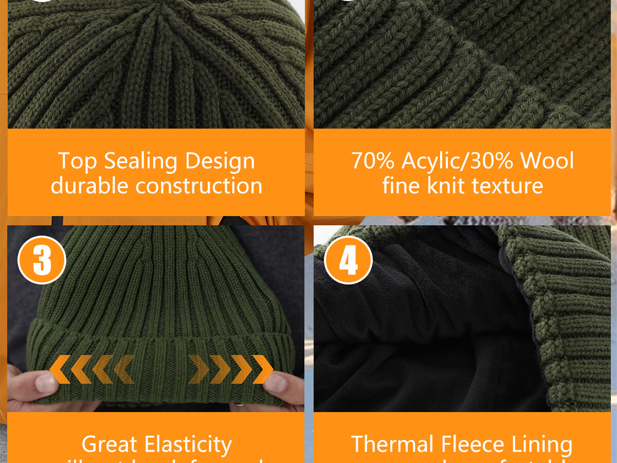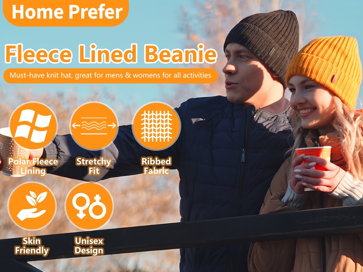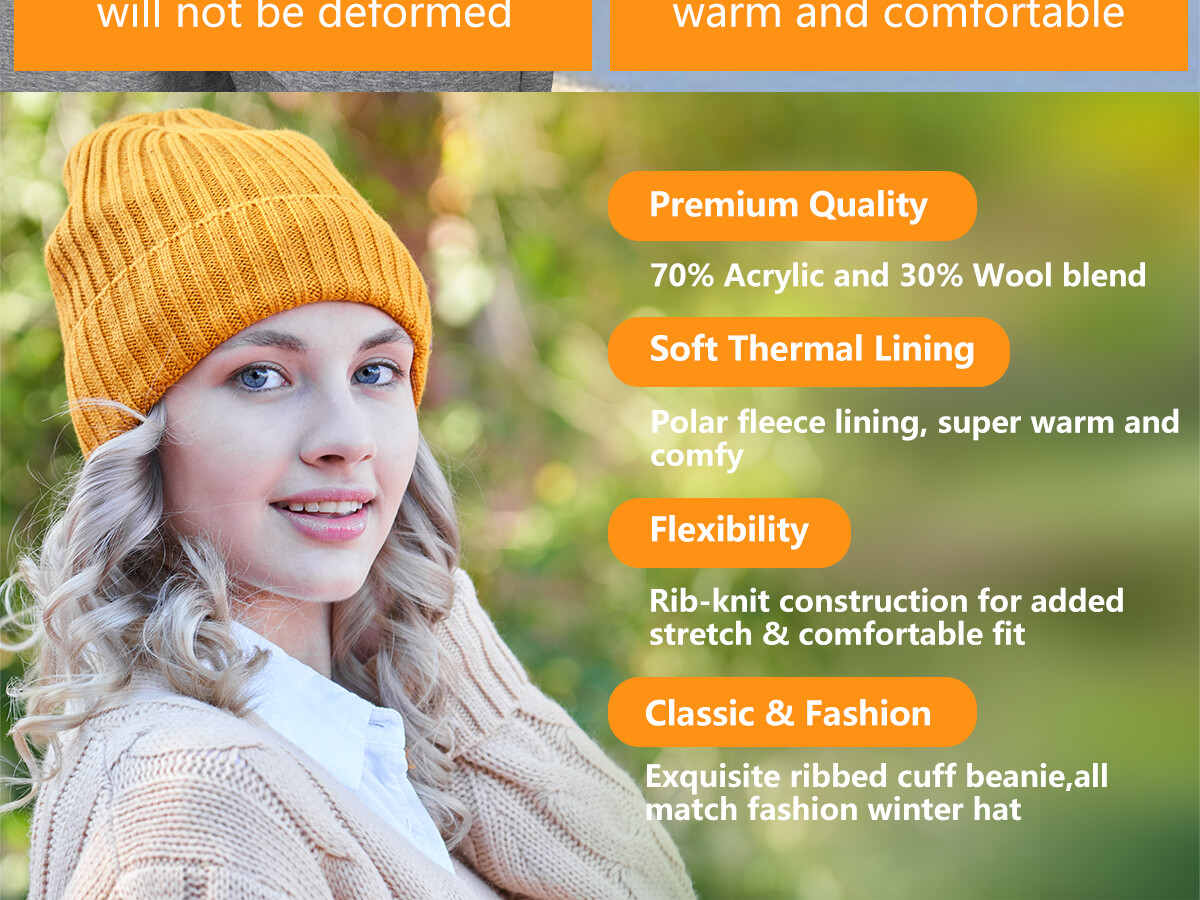 Home Prefer Fleece Lined Cuffed Beanie Hat for Men Women Knitted Winter Wool Beanies Skull Cap Warm Watch Hat
