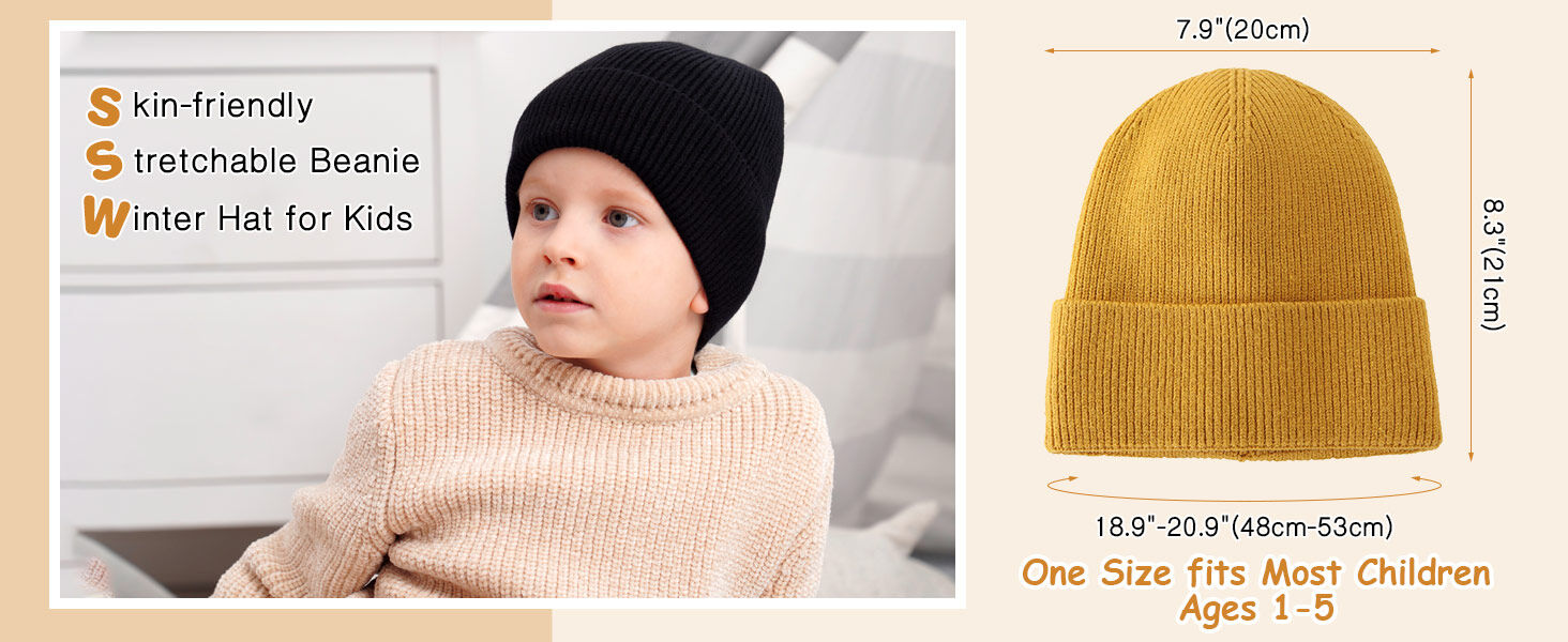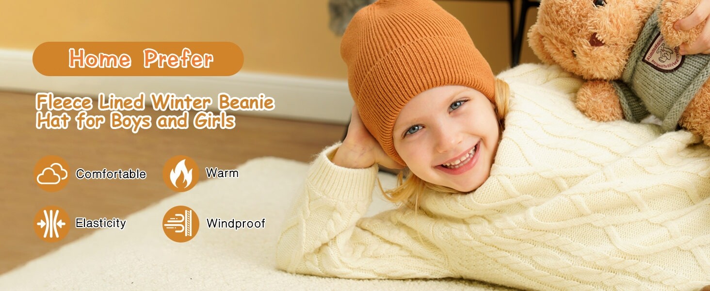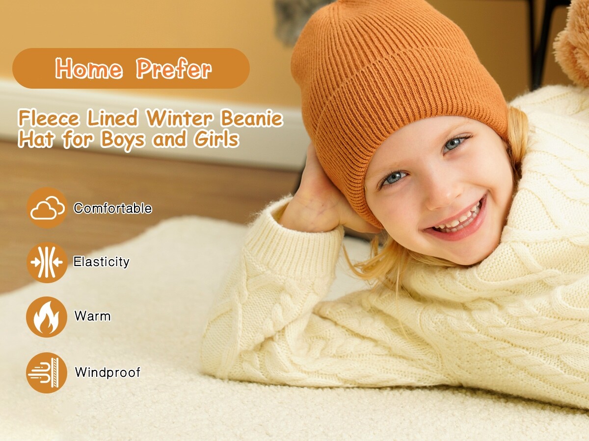 Home Prefer Kids Beanie Hat Warm Winter Hats for Boys Girls Fleece Lined Knit Cap