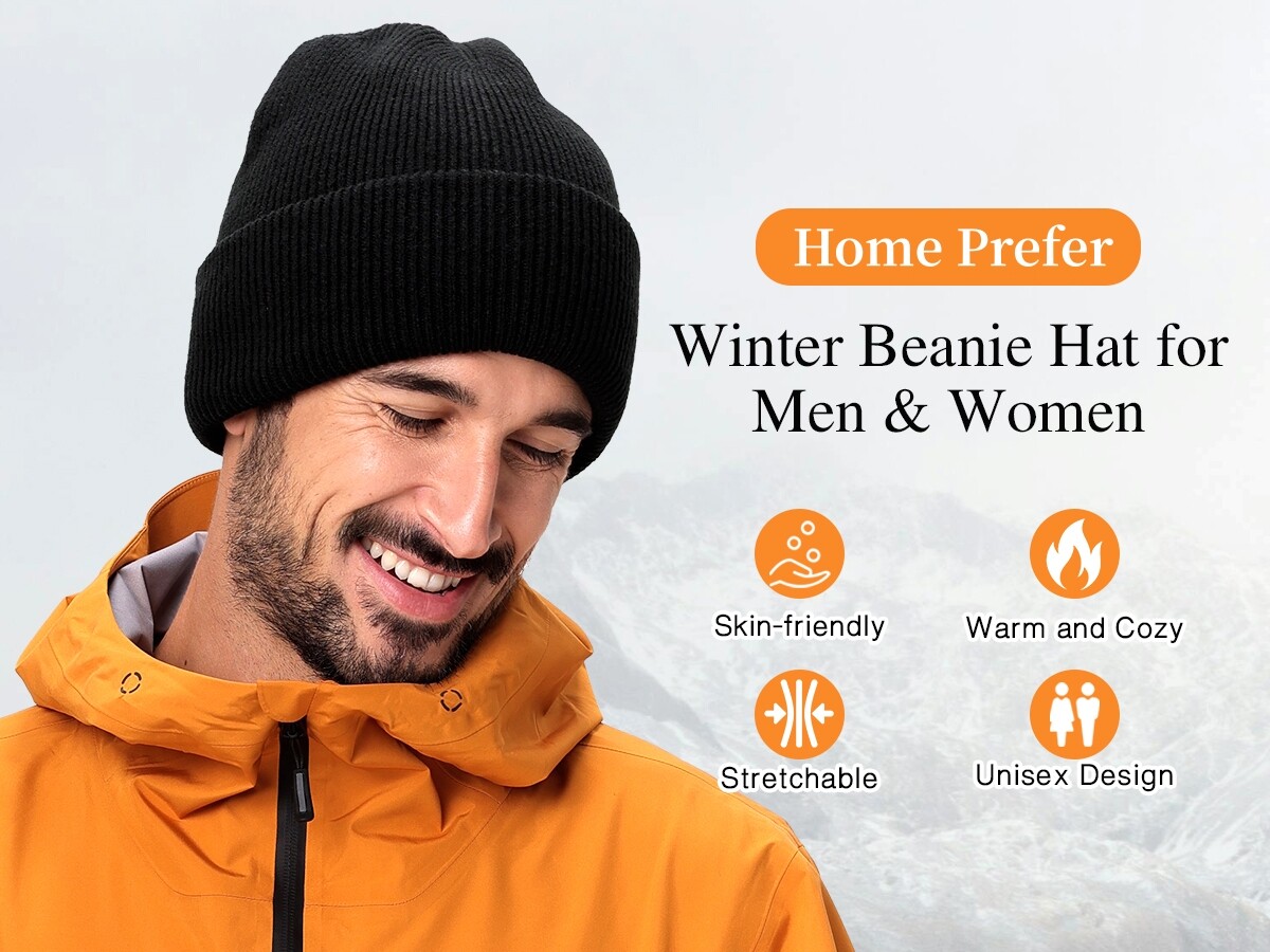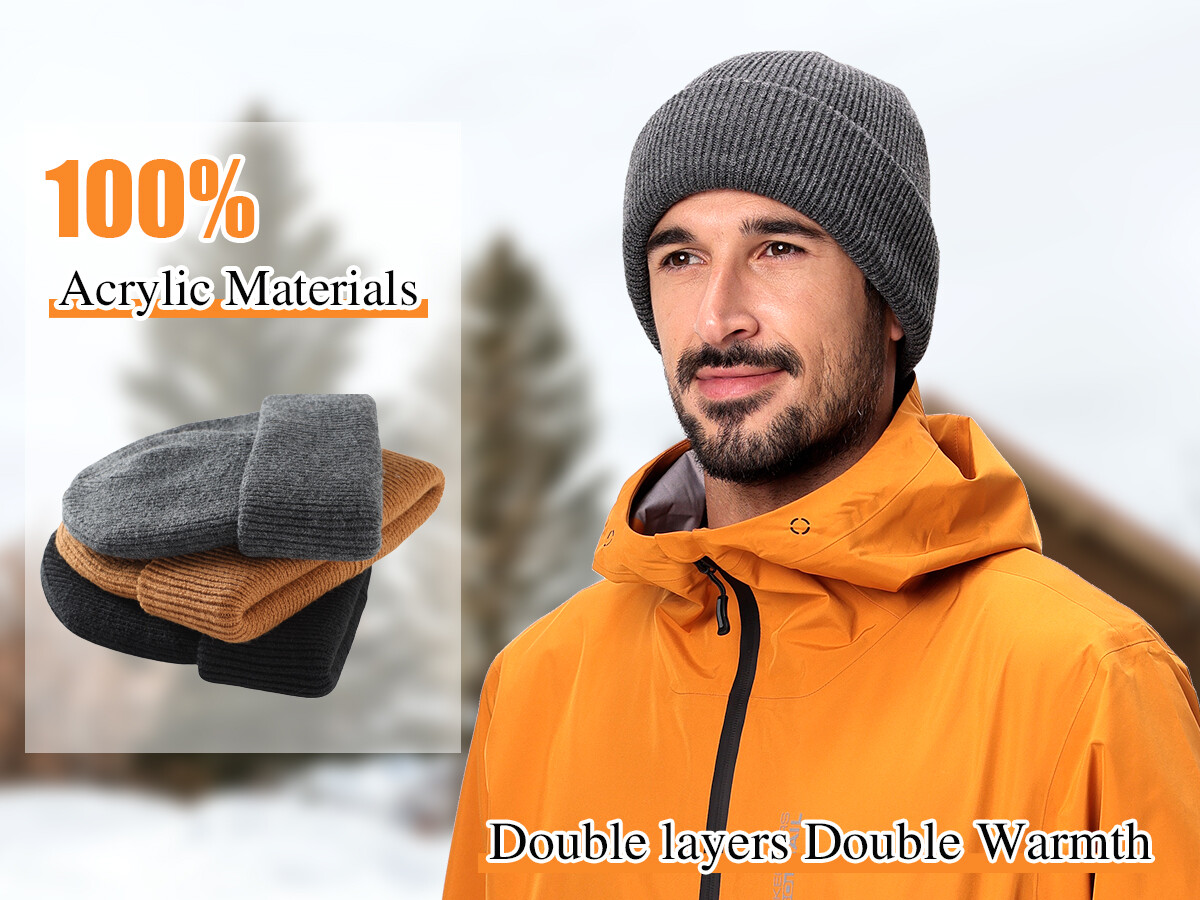 Home Prefer Men's Cuffed Beanie Hat Thick Knitted Winter Hat Acrylic Warm Stocking Skull Caps