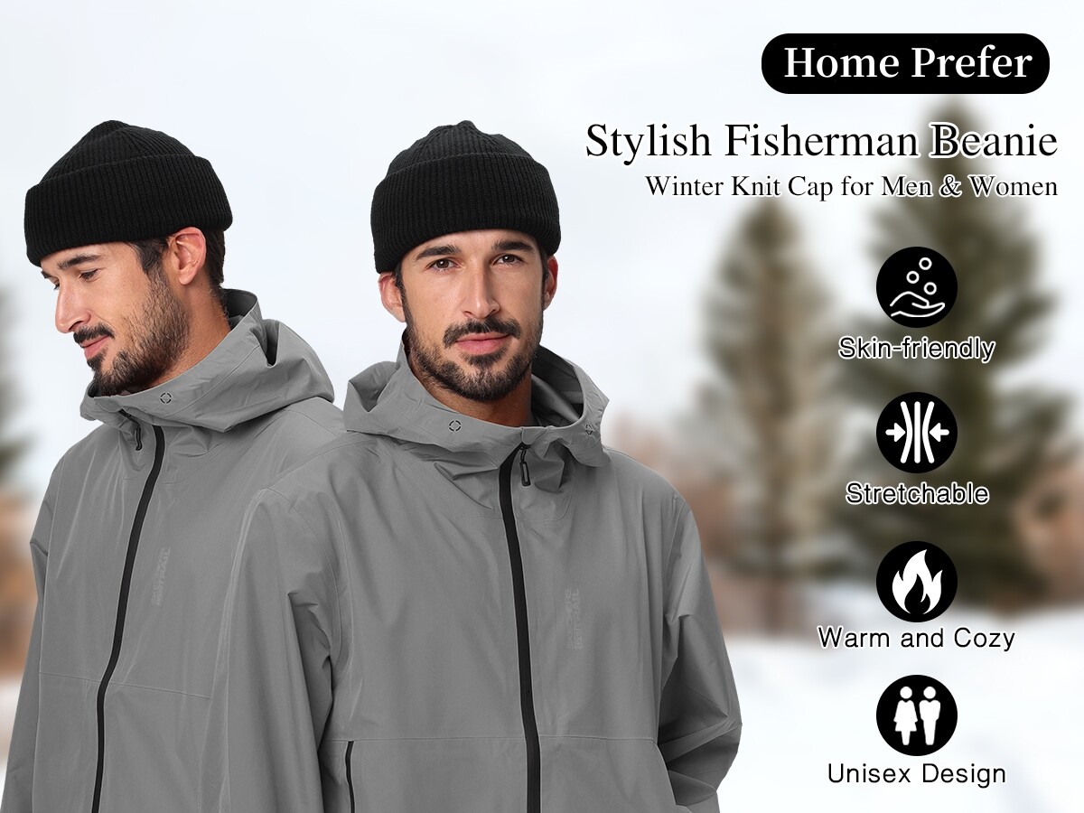 Home Prefer Short Fisherman Beanie Hats for Men Women Acrylic Winter Warm Hat Knit Cuffed Beanies Watch Cap